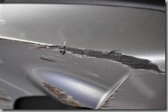 Pois é. Foi um troço doloroso tanto pra mim quanto pra moto. Chamei o seguro e o cara estimou o conserto em $3,000 dólares. Minha franquia é de $1,000. Achei que o cara tava de sacanagem. Pô, eram, ao todo, uns 5 itens pra trocar (carenagem direita, manete do freio, capa do escapamento, tampa da transmissão e ponteira direta do guidão). Bom, mandei o seguro passear e fui comprar tudo na internet. Acabei comprando todas as peças por uns $600. Chegou tudo aqui em casa, mas fiquei adiando o conserto pq, no final das contas, tava achando a moto legal com as “cicatrizes”.... Todo mundo olhava! O maior barato! Peguei um monte de gente parada olhando a moto quando eu deixava estacionada na Kaiser. Não sei porque. Talvez por dó de ver ralada uma coisa tão bem feita. Vai saber...